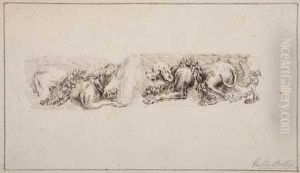 A Soldier With A Pike, A Seated Figure And A Horseman; Three Horsemen And A Peasant Driving A Cow, Another To The Right; And Two Lancers Seen From Behind