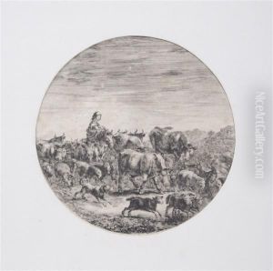 Pastoral Scene, Together With An Engraving After Cornelis Bos