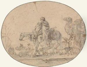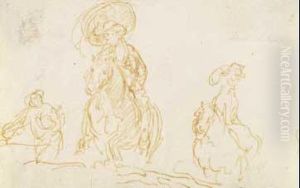 A Moor Holding A Horse Saddled With A Leopard Skin And Studies Of Afigure Holding A Dog And Another Figure