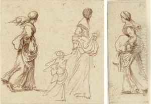 Studies Of Turbaned Figures And A Seated Woman Andchild
