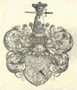 A Cartouche With Two Goats And Two Wolves Enclosing A Riverlandscape With A Boatman Approaching A Goat