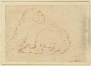 Two Barking Hounds With Studies Of A Leg And A Foot In A Stirrup(recto); A Caricature, A Head And A Dog (verso)