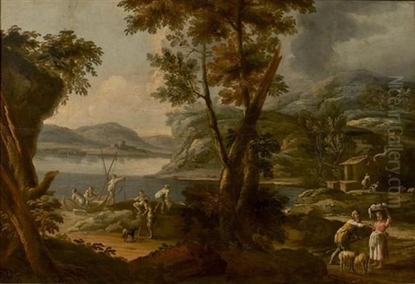 Paysans Et Pecheurs Dans Un Paysage Lacustre