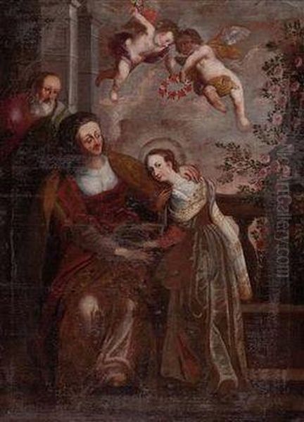 "die Hl. Mutter Anna Unterweist Die Jungfrau Maria, Imhintergrund Der Hl. Joachim"