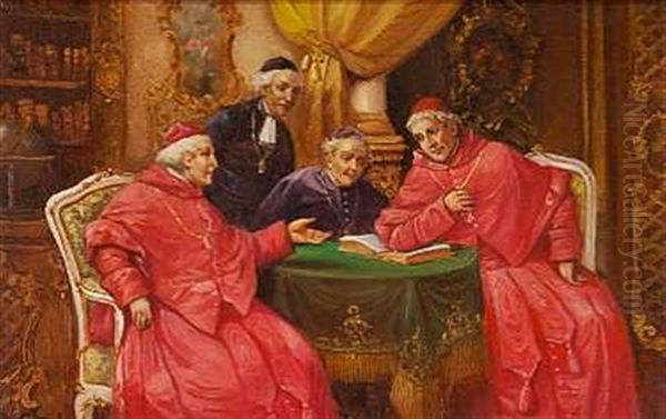 Rococointerior Med Fire Kardinaler Omkring Et Bord