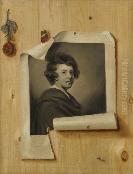 Trompe L'oeil With An Engraving Of The Self Portrait Of Sir Joshuareynolds's
