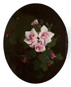 Still Life Of Roses In A Glass Vase Oil Painting by Stuart James Park