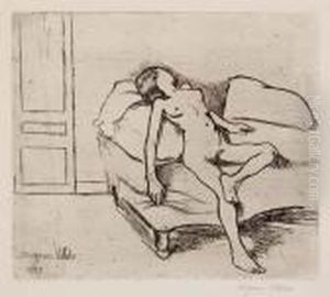 Nude sitting on a sofaFrancais:Nu assis sur un canapeItaliano:Nudo seduto su un divano
