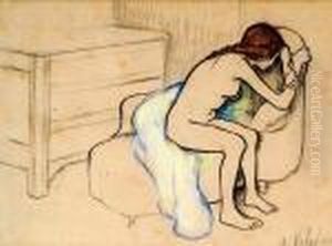 Jeune Fille Nue Assise S'essuyant Le Pied