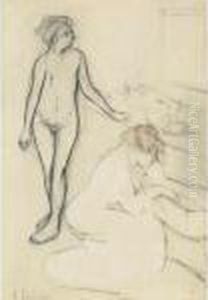 Femmes S'essuyannt; And Louise Au Tub S'essuyant
