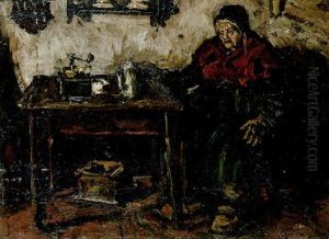 A Peasant Woman Cutting Bread