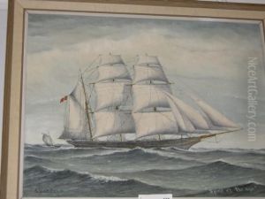 Marin Med Skutor, Signerad O Daterad 1921 Olja Pa Duk, 54x82