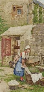 A Kitchen Interior With A Maid Cleaning Turnips