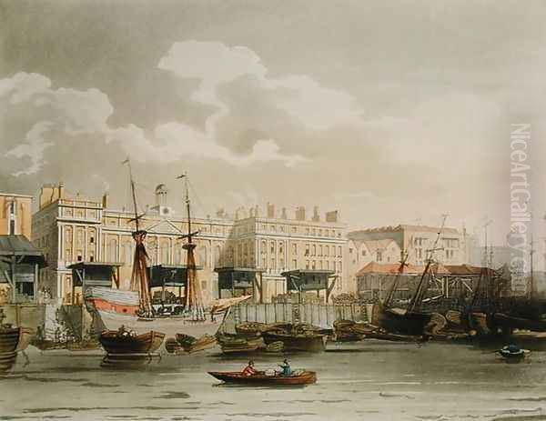 Custom House from the River Thames, from Ackermanns Microcosm of London, engraved by John Bluck fl.1791-1819, 1808