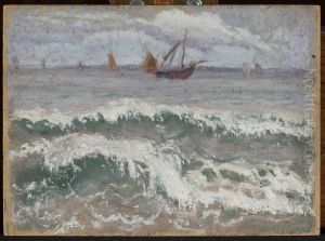 Stormy sea with boats