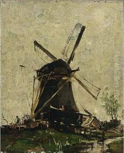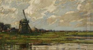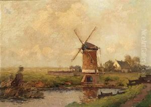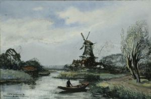 Landscape with a windmill and a bridge