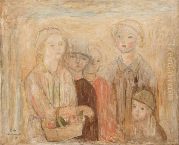 Bring the timeless beauty of Tadeusz (Tade) Makowski's Group Of Children With A Fruit Basket into your home with a handmade oil painting reproduction. Carefully recreated on canvas by skilled artists using traditional techniques, this piece captures the delicate brushwork, subtle light, and vibrant color of the original masterpiece. With museum-level quality and rich texture, it brings elegance and artistic depth to any space. Enjoy free shipping and make this masterpiece a part of your personal collection.