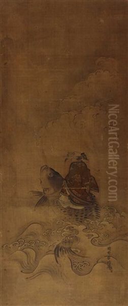 Kinko Sennin, Auf Einem Karpfen Uber Wellen Reitend