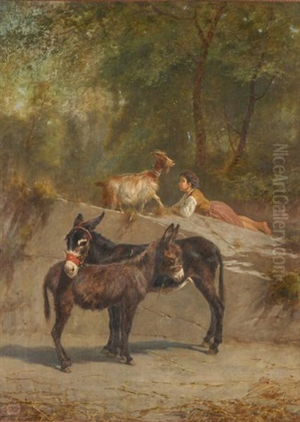 Hirtenjunge Mit Ziege Und Zwei Eseln
