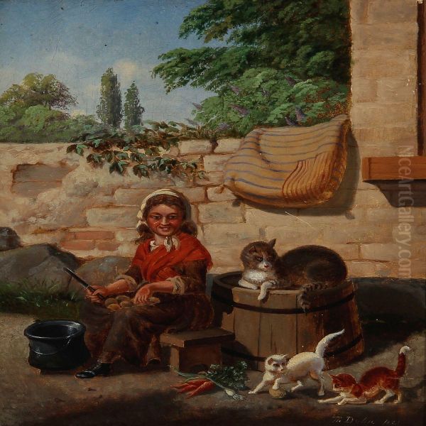 Bring the timeless beauty of Th. Dohn's A Girl Doing The Vegetables At A Brick Wall, While The Cats Are Playing into your home with a handmade oil painting reproduction. Carefully recreated on canvas by skilled artists using traditional techniques, this piece captures the delicate brushwork, subtle light, and vibrant color of the original masterpiece. With museum-level quality and rich texture, it brings elegance and artistic depth to any space. Enjoy free shipping and make this masterpiece a part of your personal collection.