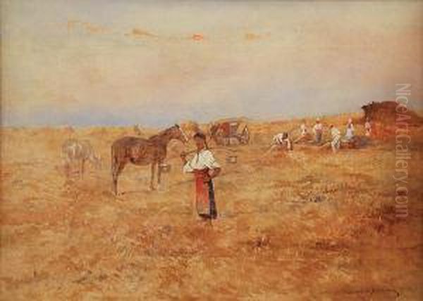 Sianokosy Oil Painting by Thaddaus von Ajdukiewicz