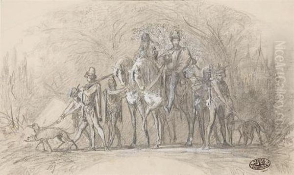 Ensemble De Onze Dessins Dont Des Etudes De Femmes Allongees, Des Scenes De Chasse, Un Gentilhomme En Redingote Et Chapeau Haute-forme