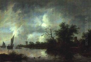 A River Landscape With A Ferry, Fountains And A Villa With Garden