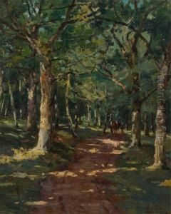 Bewaldete Landschaft Mit Reisenden Und Einem Pferdefuhrwerk