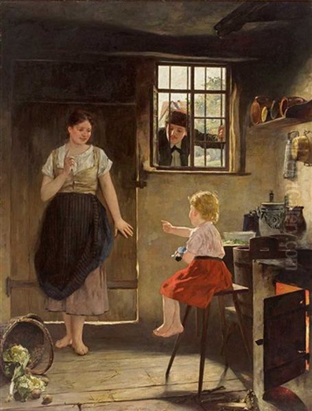Bring the timeless beauty of Theodor Dengler's Kleinkind Verrat Die Grose Schwester, Die Sich Vor Dem Durch Das Fenster Blickenden Verehrer Hinter Der Ture Verbirgt into your home with a handmade oil painting reproduction. Carefully recreated on canvas by skilled artists using traditional techniques, this piece captures the delicate brushwork, subtle light, and vibrant color of the original masterpiece. With museum-level quality and rich texture, it brings elegance and artistic depth to any space. Enjoy free shipping and make this masterpiece a part of your personal collection.