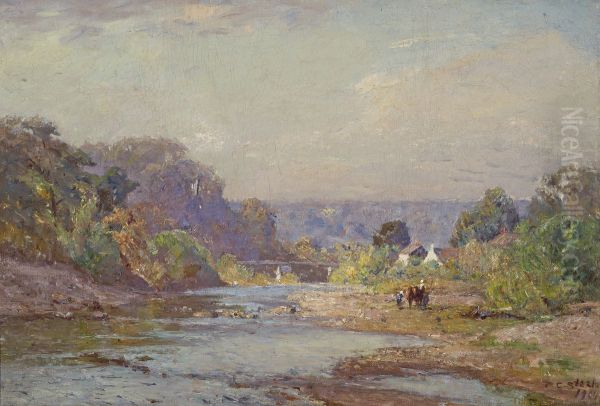 Bring the timeless beauty of Theodore Clement Steele's Brookville Landscape into your home with a handmade oil painting reproduction. Carefully recreated on canvas by skilled artists using traditional techniques, this piece captures the delicate brushwork, subtle light, and vibrant color of the original masterpiece. With museum-level quality and rich texture, it brings elegance and artistic depth to any space. Enjoy free shipping and make this masterpiece a part of your personal collection.