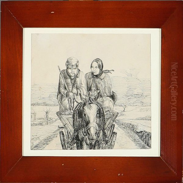 Smoking Peasant And His Wife In Their Horse Carriage