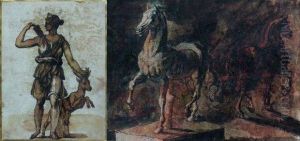 Two Horses Fighting, With A Subsidiary Study Of The Same (recto); Asatyr Abducting A Nymph (verso)
