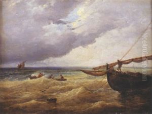 Vor Dem Gewitter. Fischer Beim Einholen Der Netze Auf Hoher See