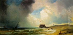 A Sailingvessel Along The Coast (+ Another Similar; Pair)