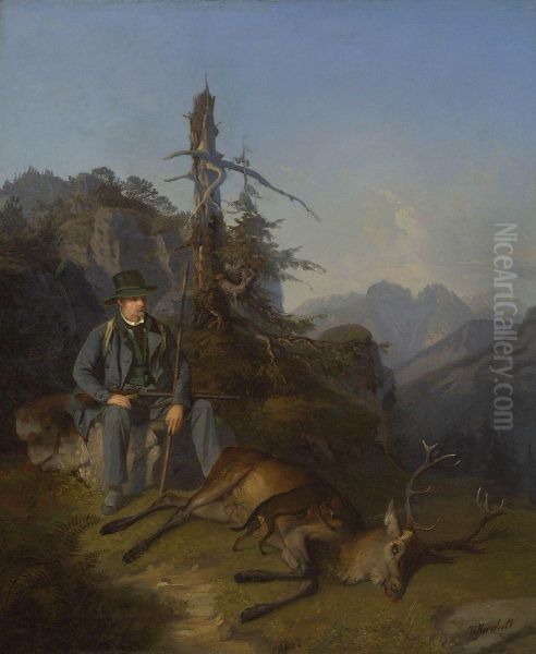 Jager Mit Erlegtem Vierzehnender