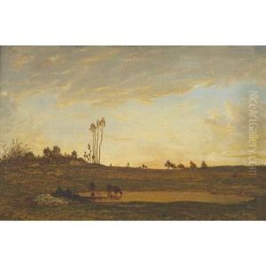 Grand Peuplier Dans La Plaine De Barbizon: Soleil Couchant