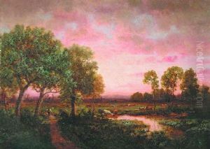 A Pastoral Scene With Cattle In A Clearing And A Pond In The Foreground