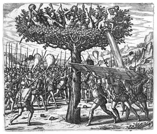 Indians in a Tree Hurling Projectiles at the Spanish
