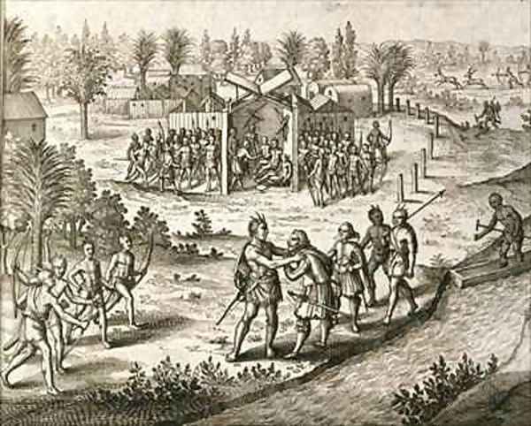 Bring the timeless beauty of Theodore de Bry's Ralph Hamor visits Powhatan with a proposal into your home with a handmade oil painting reproduction. Carefully recreated on canvas by skilled artists using traditional techniques, this piece captures the delicate brushwork, subtle light, and vibrant color of the original masterpiece. With museum-level quality and rich texture, it brings elegance and artistic depth to any space. Enjoy free shipping and make this masterpiece a part of your personal collection.