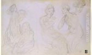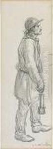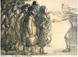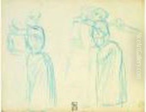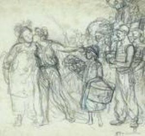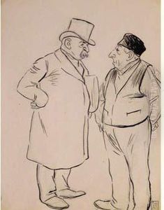 Etude De Figures Dont Homme En Manteau Et Chapeau Haut De Forme Et Femme Au Fer A Repasser