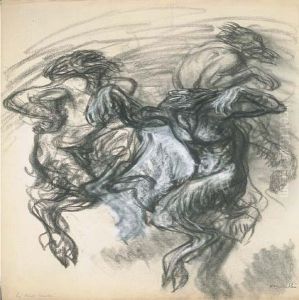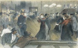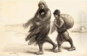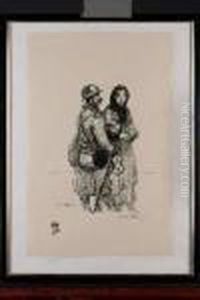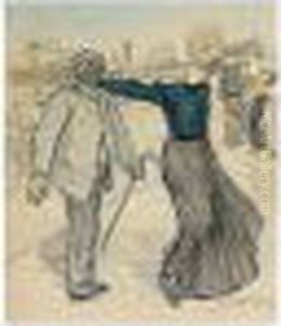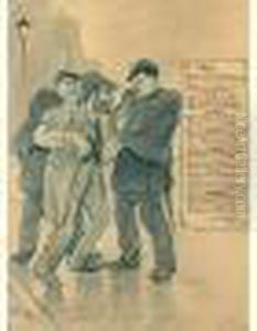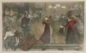 Attributed To Theophile Alexandre Steinlen, -- Scene In The Market; Red Crayon, 27x42cm