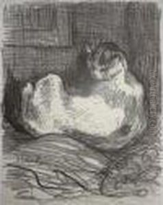 Nu Debout Avec Chats.