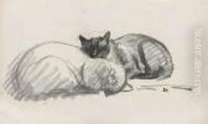 Chat Endormi Oil Painting by Theophile Alexandre Steinlen