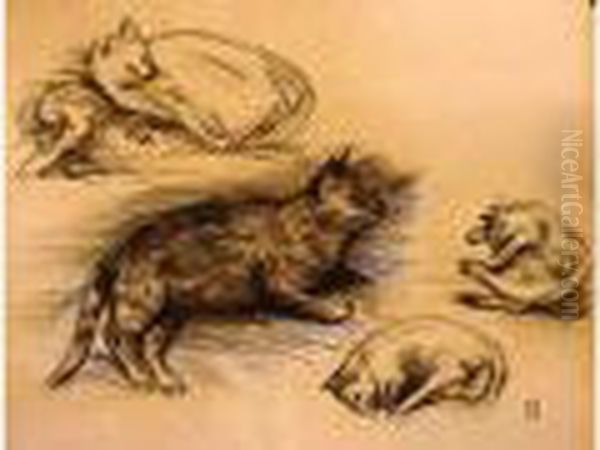 Etude De Chats Oil Painting by Theophile Alexandre Steinlen