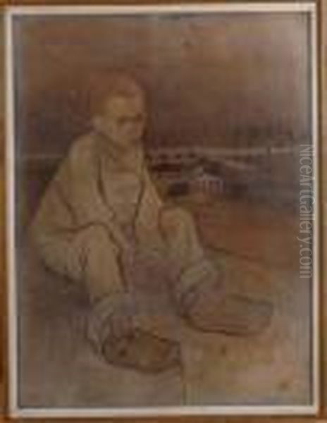 Jeune Paysan Assis Oil Painting by Theophile Alexandre Steinlen
