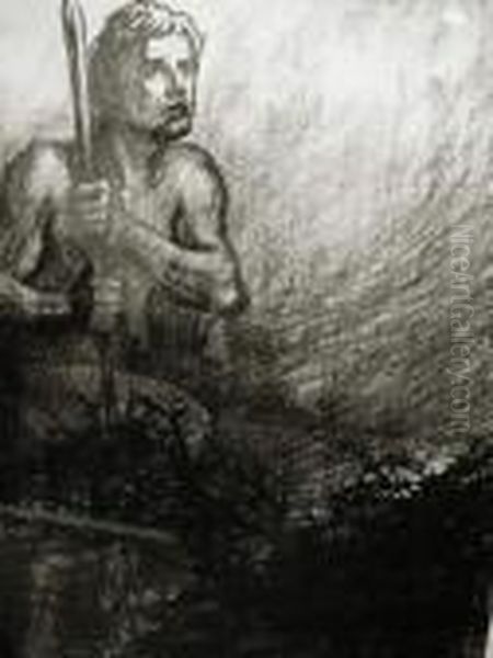Theophile-alexandre, Allegorie - Homme S'appuyant Sur Un Baton Parmi Lesbarbeles