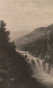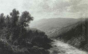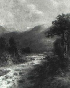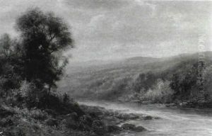 River Landscape With Mountains Beyond
