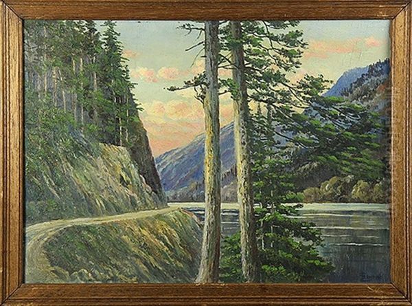 "cameron Lake," "ojai Mission Cathedral Church)," And Figures In Row Boat Approaching Cove (3 Works)