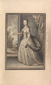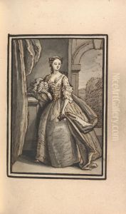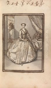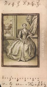 Portrait Of Lady Henrietta Vernon In Masquerade Dress, Holding A Quill In Her Left Hand, A Red Curtain Beyond