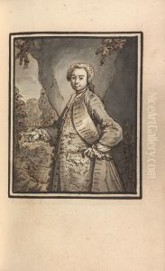 Portrait Of A Boy Wearing A Brown Coat And Blue Waistcoat, Standing In A Landscape Holding A Bow
